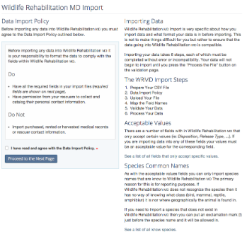 One of the neat extensions that we have created in WRMD is “WRMD Import”. If your facility has digital records from past years, you can import these records into the current system. In order to do this, the information has to meet certain standards. Basically, it has to match what the terms and formatting are, in WRMD.